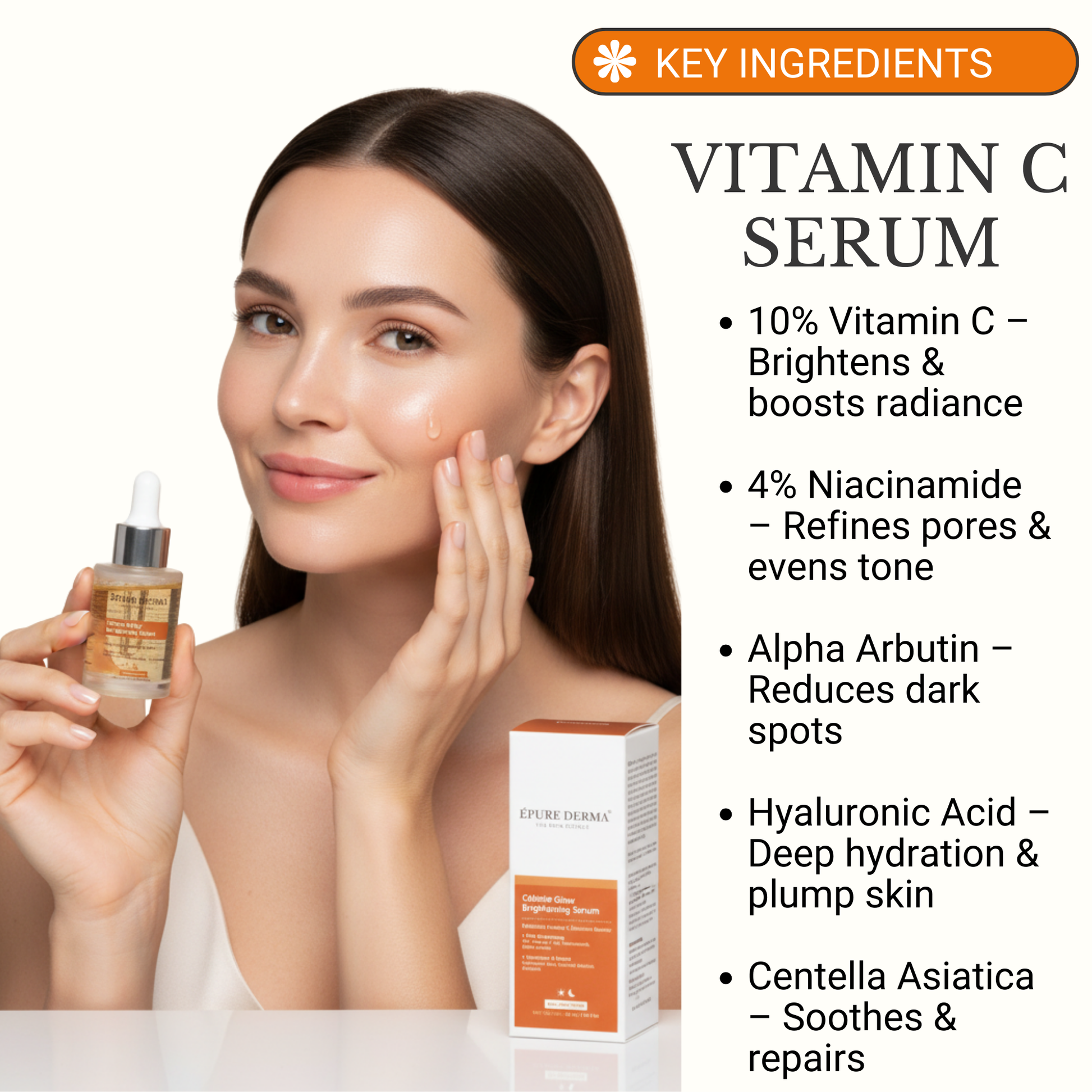 - Take 2–3 drops of the Vitamin C Serum.